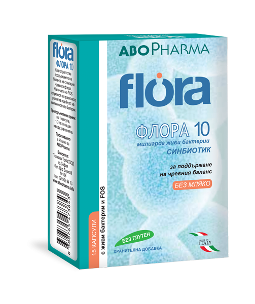 Recomandări: Flora 10 favorizează mentinerea echilibrului florei gastro-intestinale. Prezenţa FOS contribuie la dezvoltarea şi activitatea corectă a bacteriilor lactice. Conţinut: gelatină naturală (capsule), inulină, fructo-oligozaharide (FOS), vitamina C (acid ascorbic) * Lactobacillus bulgaricus 100 de miliarde de bacterii vii (CFU) / g (3 miliarde de bacterii vii / capsula) * Lactobacillus acidophilus 150 miliarde. bacterii vii (CFU) / g (3 miliarde. bacterii vii / capsulă), celuloză microcristalină, * Streptococcus termofile 200 de miliarde de bacterii vii (CFU) / g (2 miliarde. bacterii vii / capsulă). Vitamina B3 (niacina), dioxid de siliciu micronizat * Streptococcus lactis 100 de miliarde de bacterii vii (CFU) / g (0,5 miliarde de bacterii vii/ capsula) * Enterococcus fatsium 100 de miliarde de bacterii vii (CFU) / g (0, 5 miliarde bacterii vii / capsulă), stearat de magneziu, * Bacillus koagulans 200 de miliarde de bacterii vii (CFU) / g (0,5 miliarde bacterii vii / capsulă), vitamina B1 (clorhidrat de tiamina), coloranţi: Dioxidul de titan * bazat pe maltodextrina, * CFU (Colony forming units)